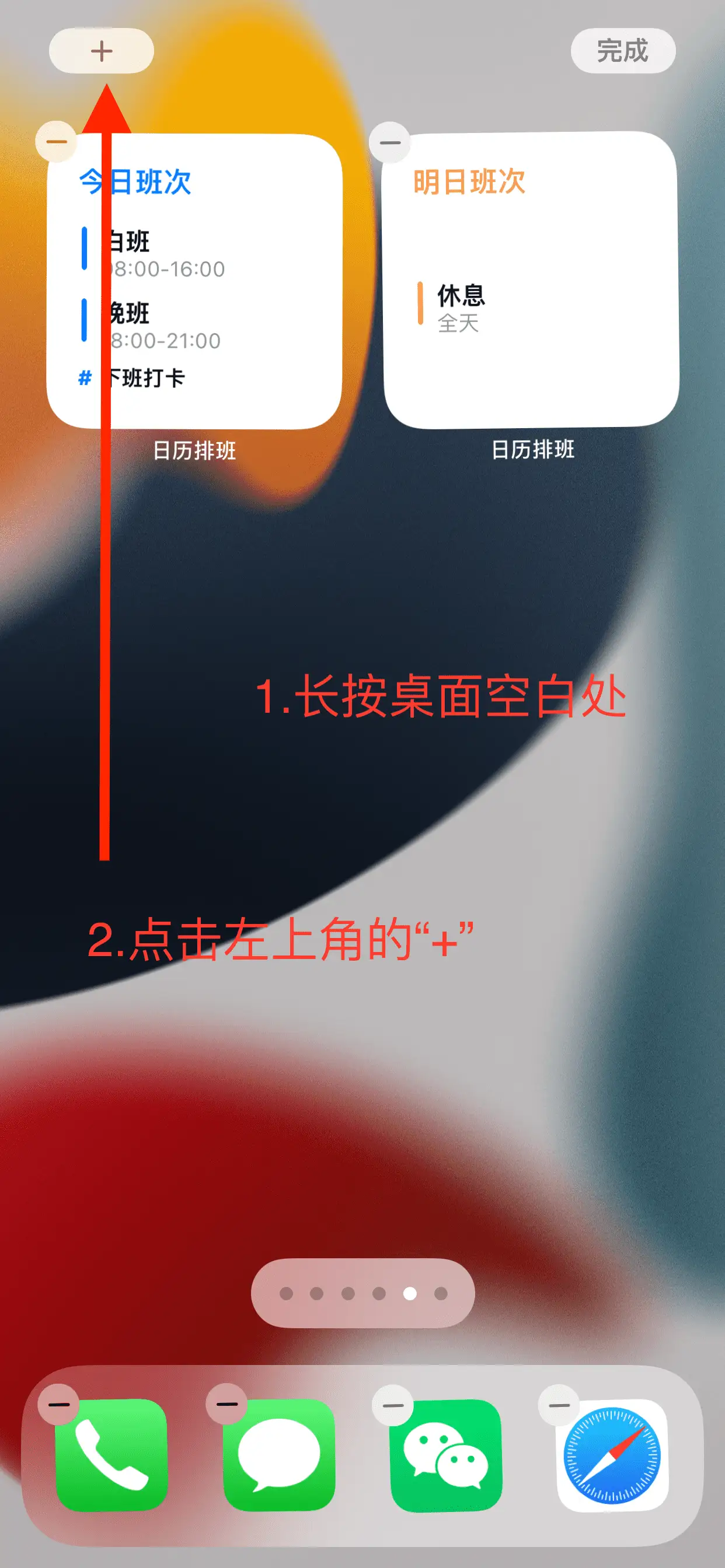 1.在手机桌面空白处长按,点击左上角出现的“+”。