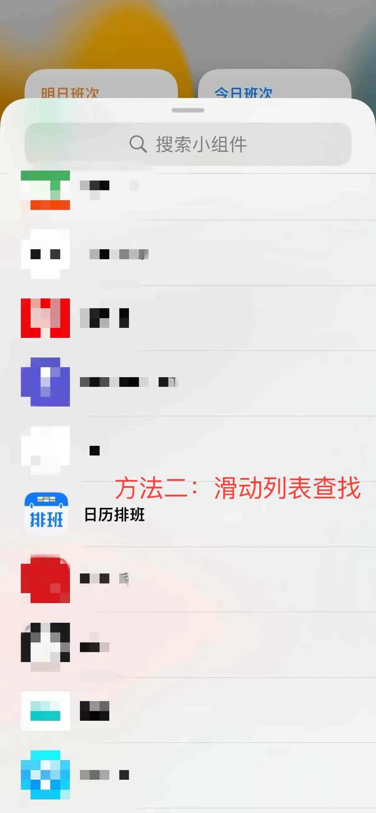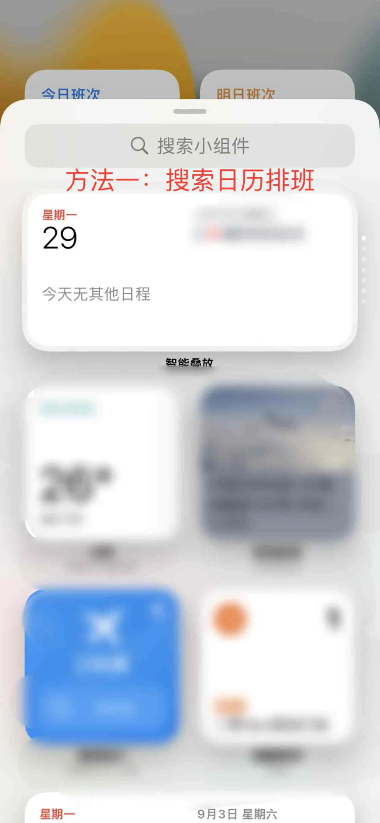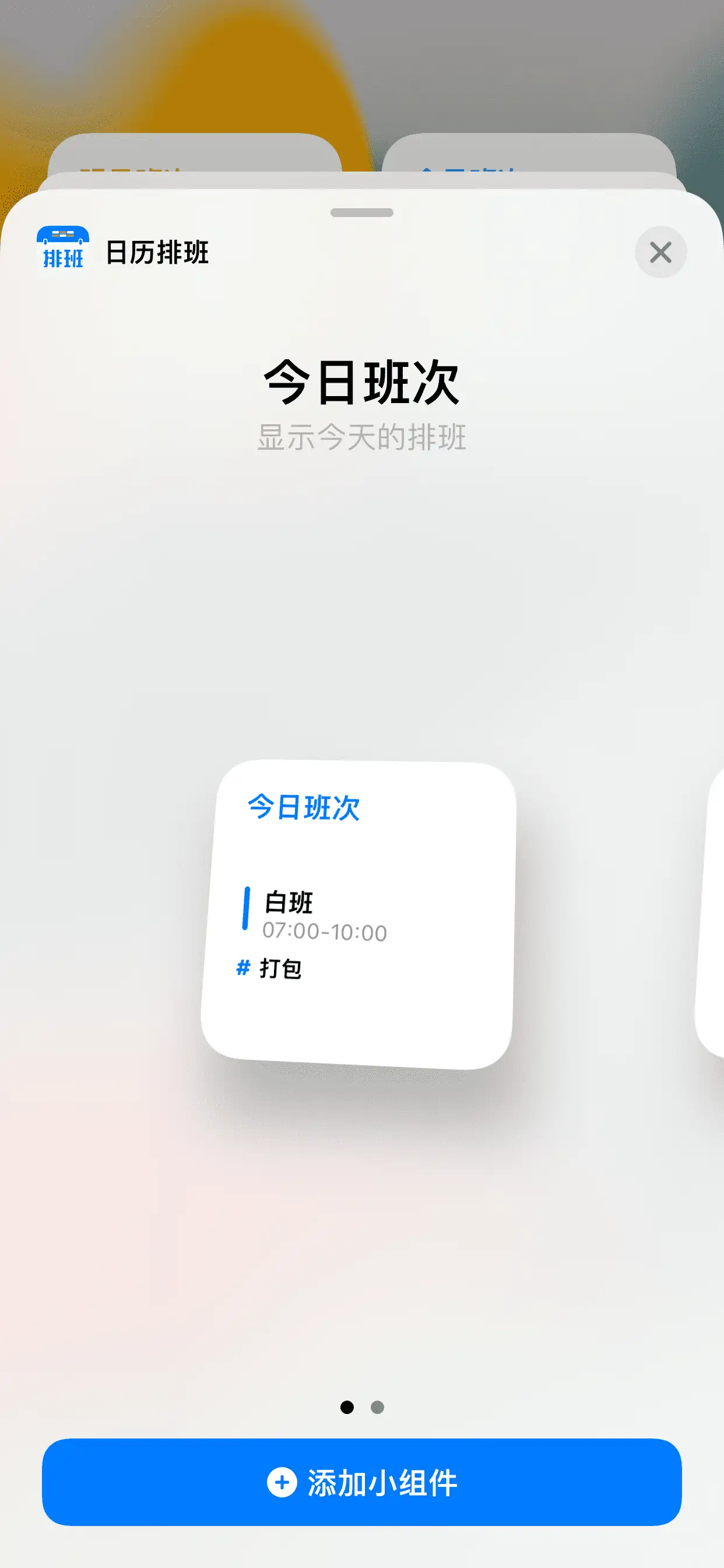 3.选择需要的小组件 根据您的需要,选择合适的小组件。 目前我们有提供【今日班次】、【明日班次】