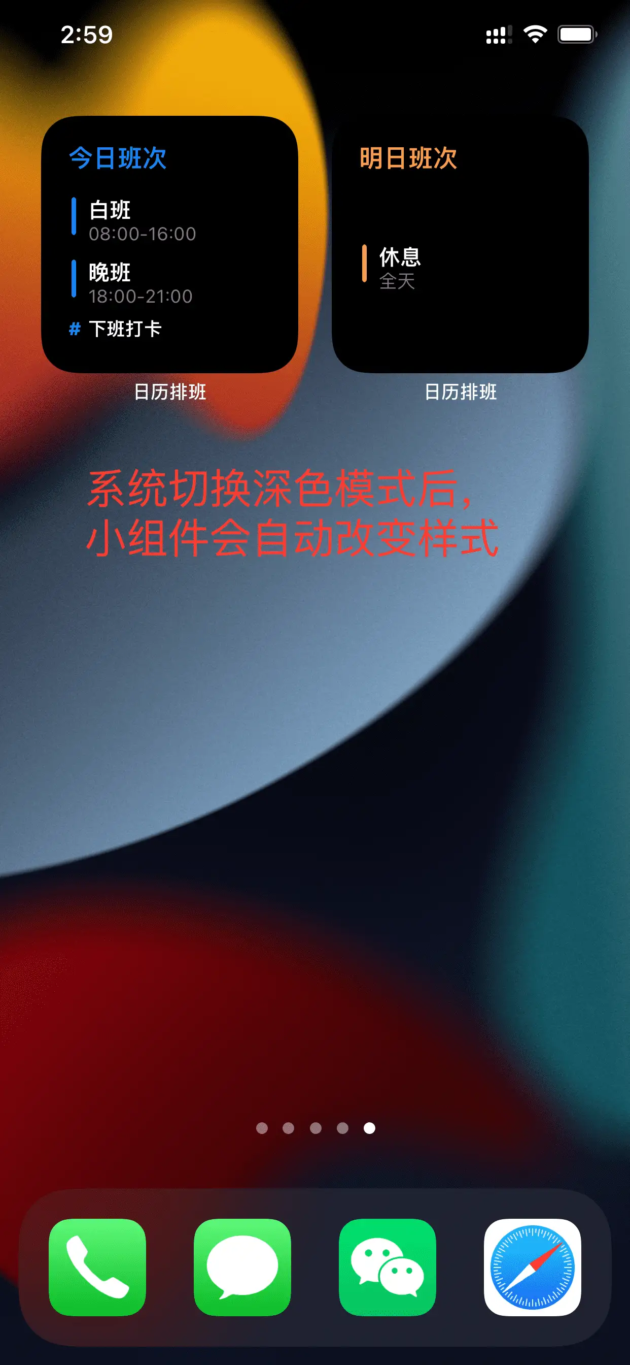 4.切换深色模式。 小组件会跟随系统模式,切换浅色/深色的组件样式