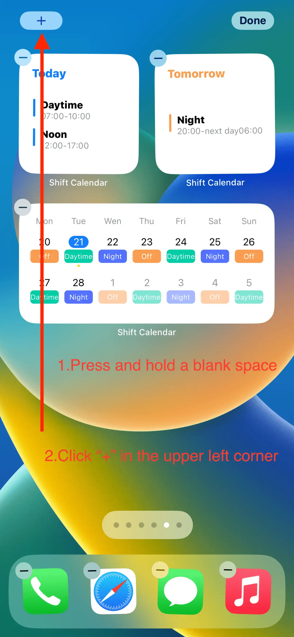 Press and hold a blank space on the phone desktop, and click the “+” that appears in the upper left corner.