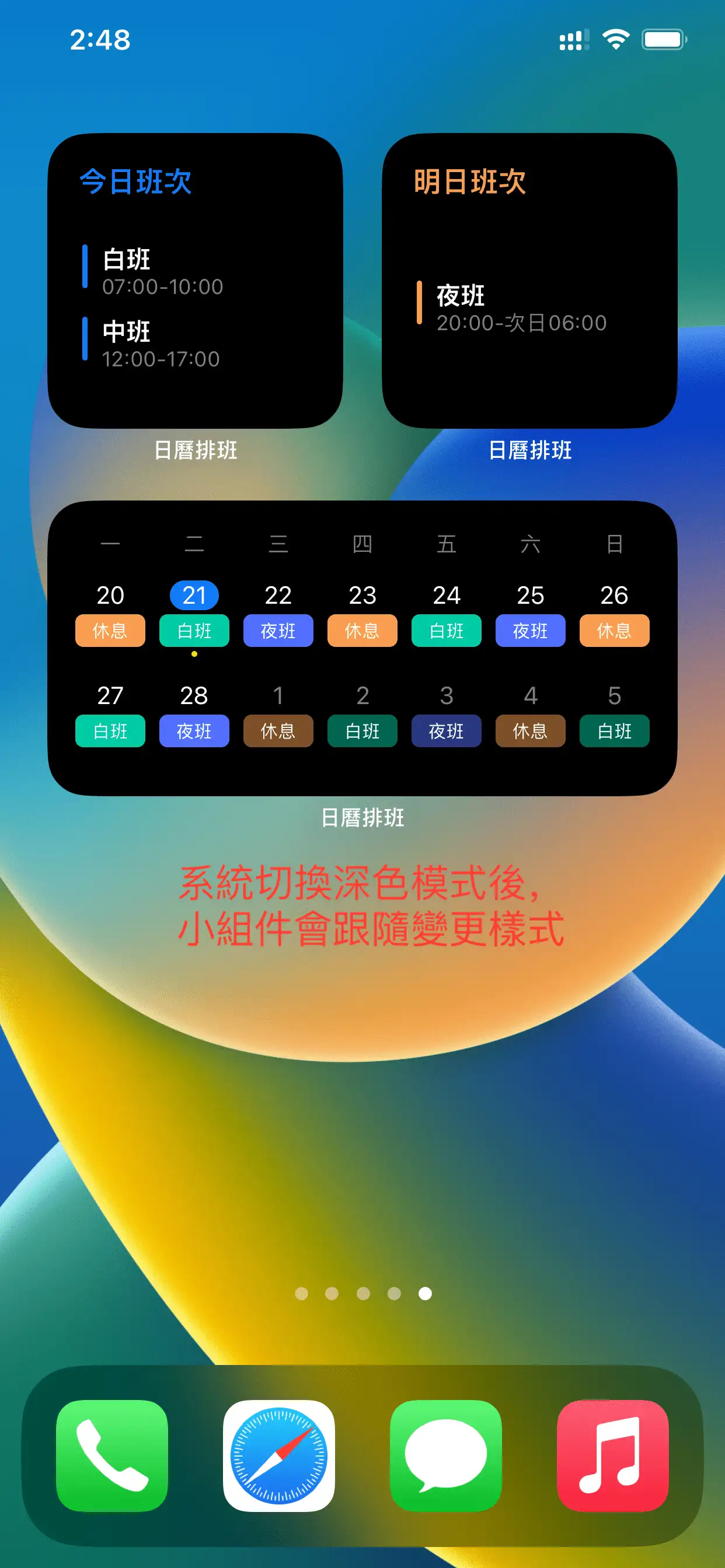 切換深色模式 小組件會跟隨系統模式,切換淺色/深色的組件樣式
